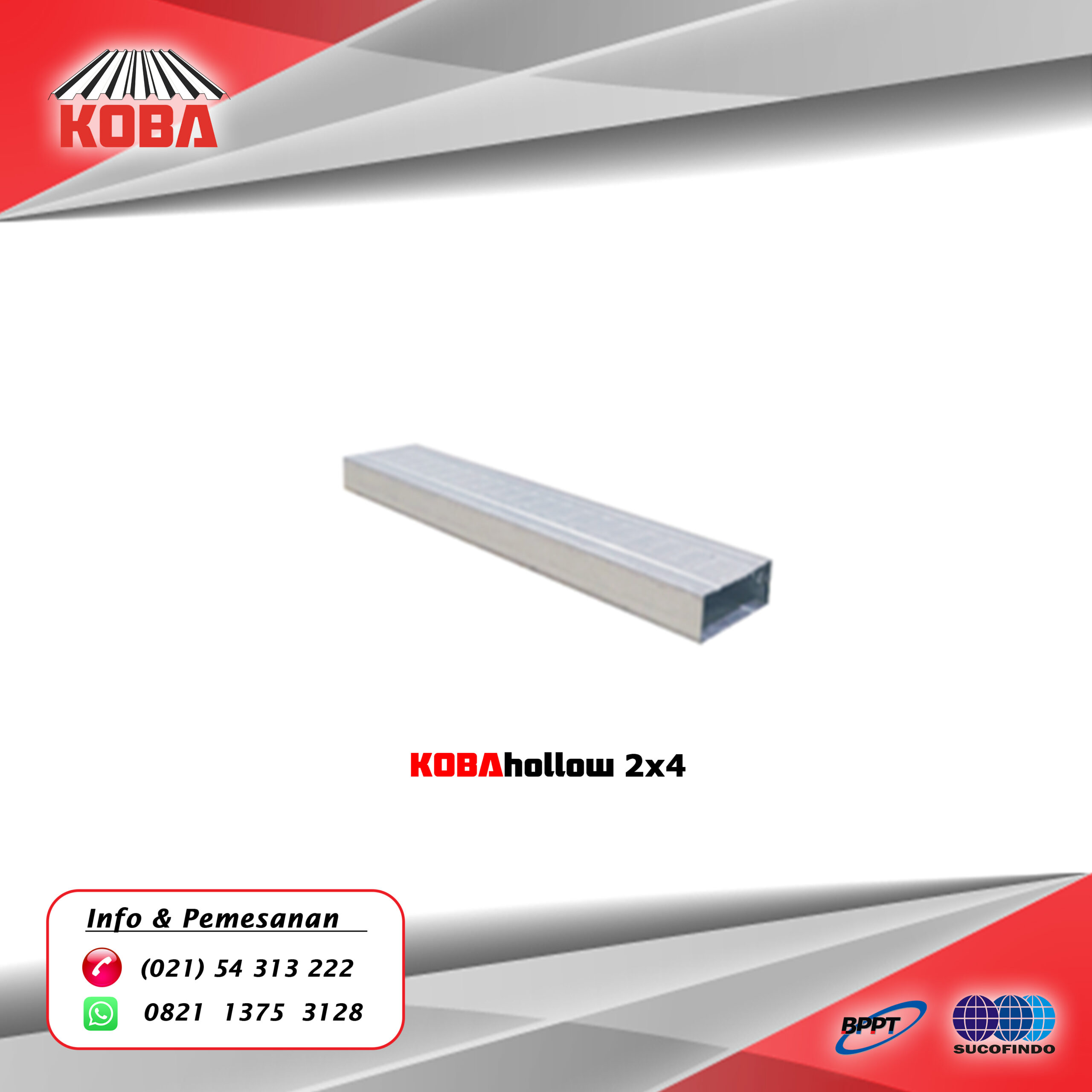 Sesuai dengan namanya, KOBAhollow merupakan besi hollow galvalum atau pipa kotak galvalum yang memiliki zinc atau seng (Zn) dan aluminium (Al) sebagai lapisan luarnya.