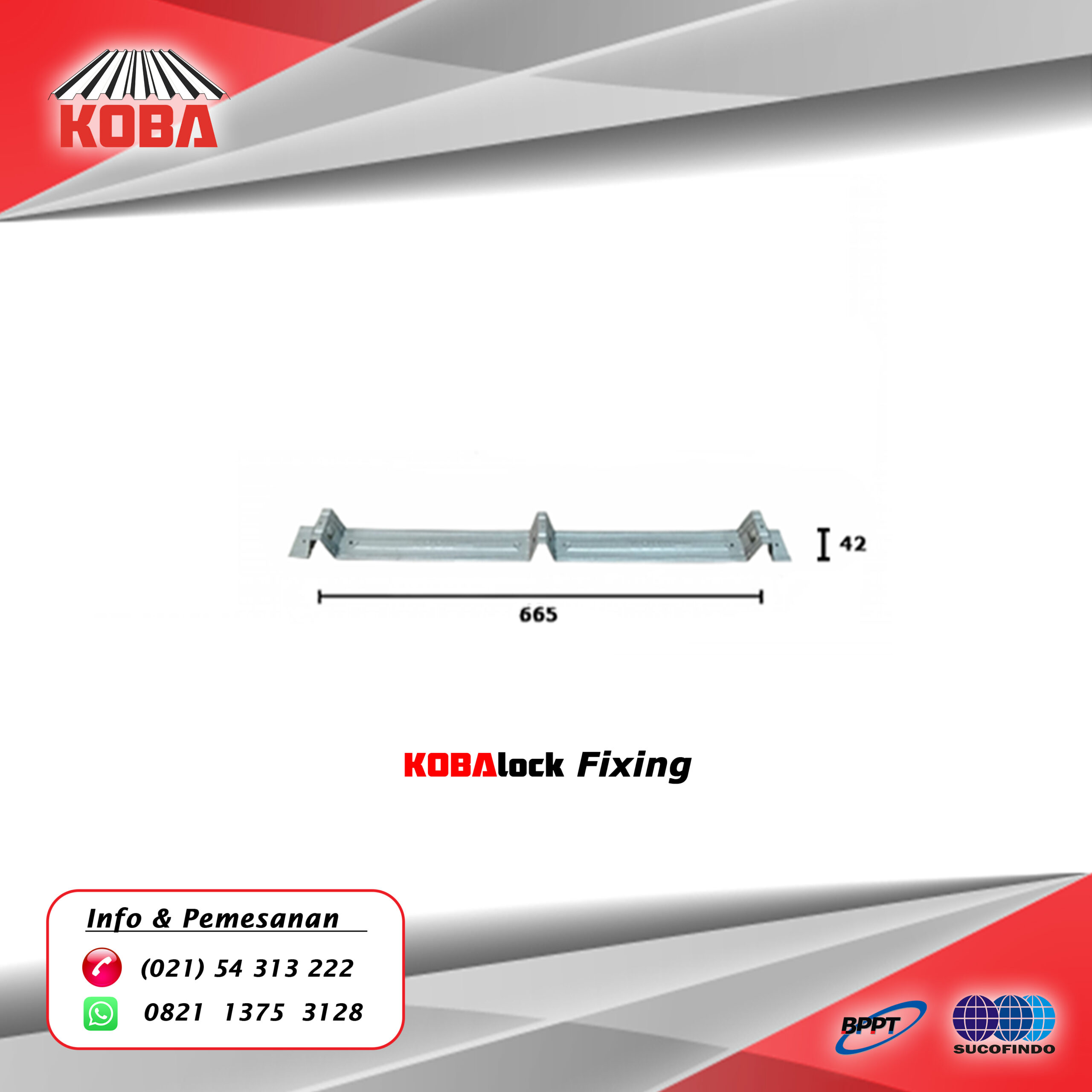 Accessoris penting untuk pemasangan produk Atap Kliplok / Clip lock / KOBAlok 1000 dari PT KOBA METAL INDONESIA, Fixing dipasang pada gording dengan menggunakan SDS Waferhead, sebagai pengikat pada profil kuncian KOBAlock 1000.