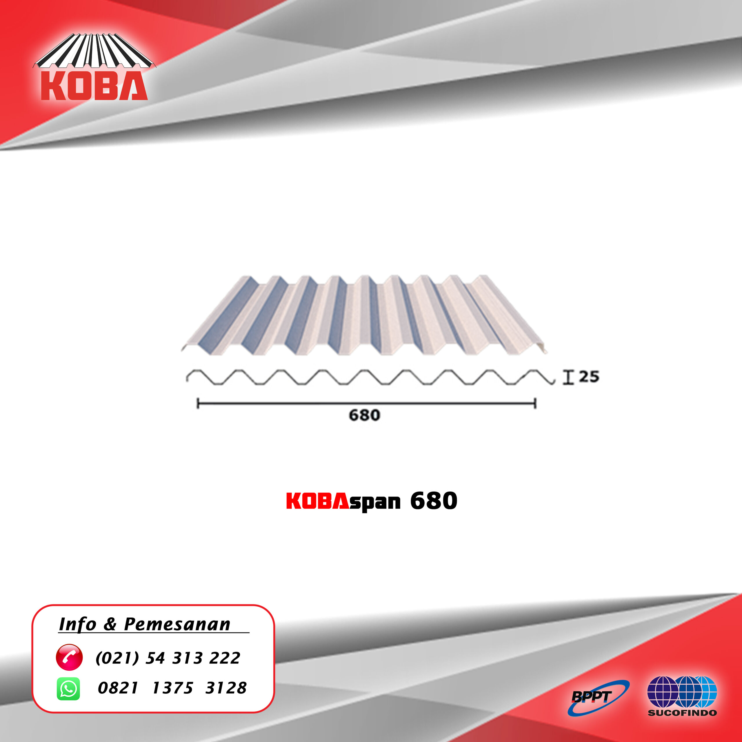 Produk Spandek/Trimdek dengan baja berkualitas tinggi  dengan lebar efektif 680mm dan Tegangan tarik (Tensile Strength) G550, dapat dipergunakan sebagai atap dan dinding bangunan anda.